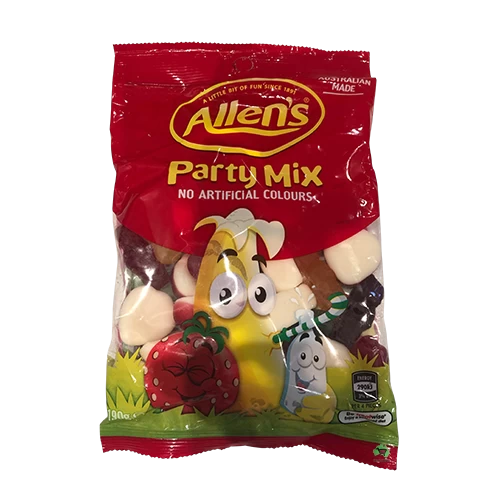 Allen’s Party Mix, have the ultimate party with all your friends! This party mix has all your favourites – Bananas, Peaches and Cream, Milk Bottle, Strawberries and Cream, Black Cats, Red Frogs, Jelly Babies and Snakes. This mix will make anyone happy – In a bowl, jar or on the floor this party mix will be the best party starter for any occasion!