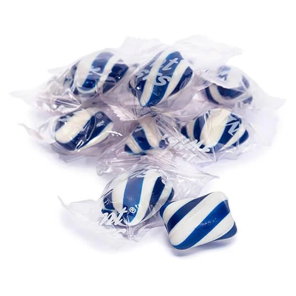 Bright blue and white hard candy nuggets featuring a refreshing peppermint flavor! Perfect for candy buffets and dessert tables with a blue color scheme, these delicious mint candies are excellent for outdoor events because they are very heat resistant and won’t melt even in a warm temperature environment.