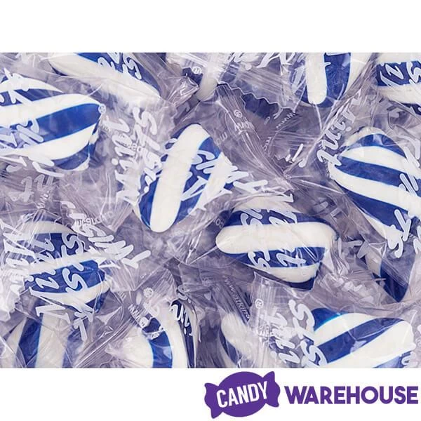 Bag contains 5 pounds of wrapped Blue Mint Twists Hard Candy.