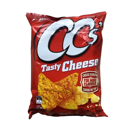 Tasty Cheese flavoured corn chips. Real cheese baked in! Real Aussie ground corn, deliciously seasoned & with real cheese baked into the chip for more flavour! Irresistibly cheesy CC’s, you can’t say no to that. Just say CC’s. Gluten Free, and great for entertaining!
