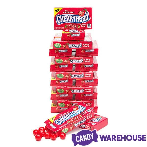 Display box contains 24 Cherryhead Candy Mini Packs, each with a net weight of 0.8 ounce.
