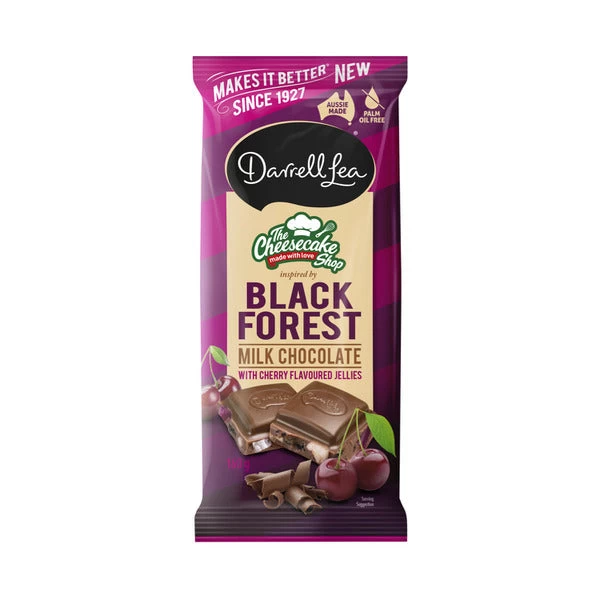 A delicious collaboration inspired by The Cheesecake Shop’s yummy Black Forest, blended with Darrell Lea’s famously smooth & creamy milk chocolate.