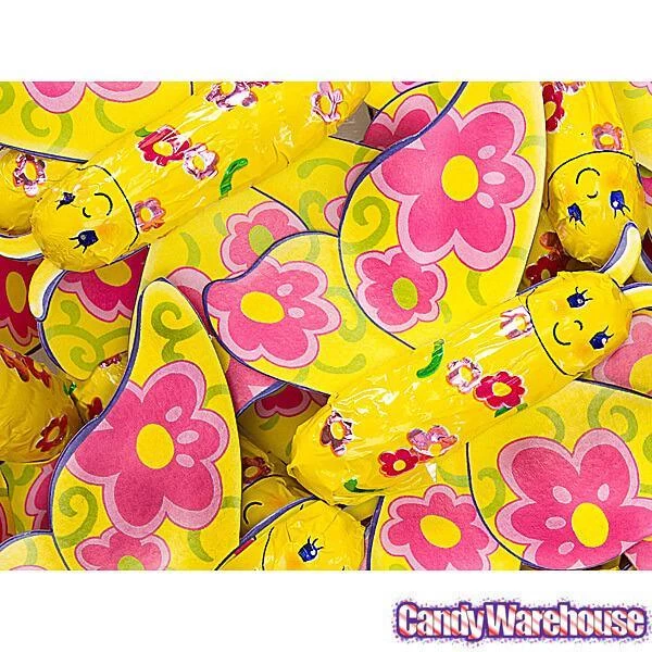 This pretty pink and yellow butterfly shows off her mouth with a cute, friendly smile. Her cardboard wings are covered in a springtime floral design, but better yet, you can unwrap the shiny decorated foil around her body to reveal a decadent piece of rich milk chocolate! Go ahead and savor a bite — make all those mouthless moths jealous!