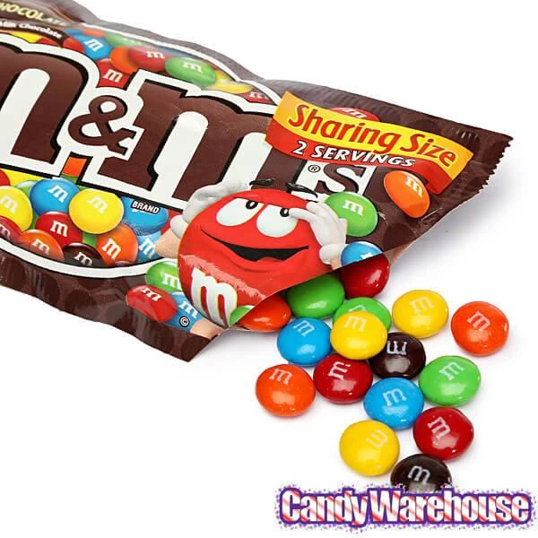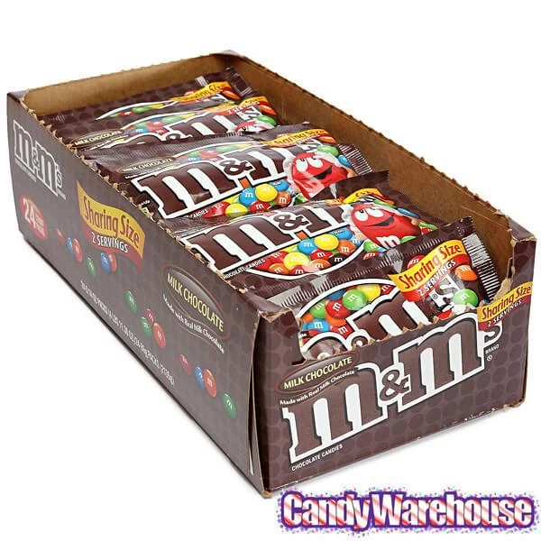 Display box contains 24 Plain M&M’s Candy Packs, each with a net weight of about 3 ounces.