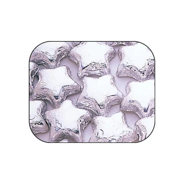 Decadent milk chocolate stars wrapped in shiny metallic foils of bright silver!