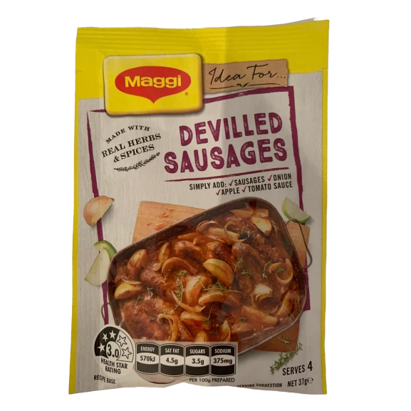 Maggi devilled sausages at your next family dinner. Maggi recipe bases make it easy to create healthy, balanced meals that taste great for you and your family. Just add – sausages, onion, apple, and tomato sauce.