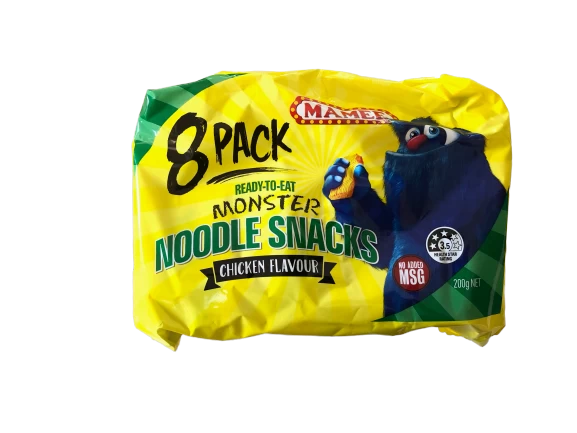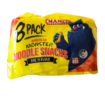 Mamee noodle snacks BBQ is a ready-to-eat snack that has no added MSG, no preservatives and artificial colours.