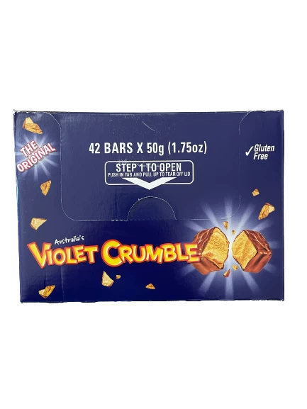 Nestle Violet Crumble – chocolate covered crunchy honeycomb bar. Its the way it shatter that matters! (42 x 50g bars)