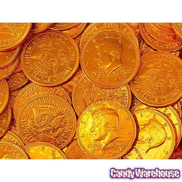 Aptly named for the Bullion Depository vault of the United States Department of the Treasury, these delicious milk chocolate coins are wrapped in orange metallic foils embossed with images found on a real US half dollar coin.