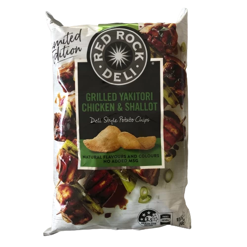 Our Grilled yakitori chicken and shallot potato chips combine the delicious sweet and salty flavour of tender grilled chicken skewers with soy and shallot.