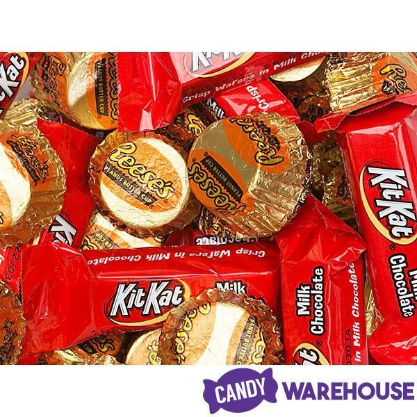 Bag contains 2 pounds of Reese’s Peanut Butter Cups and Kit Kat Miniatures Bulk Candy Assortment – That’s about 100 pieces.