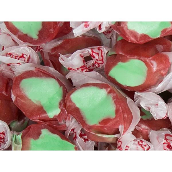 Bag contains 2.5 pounds of Gourmet Candy Apple Salt Water Taffy Candy.