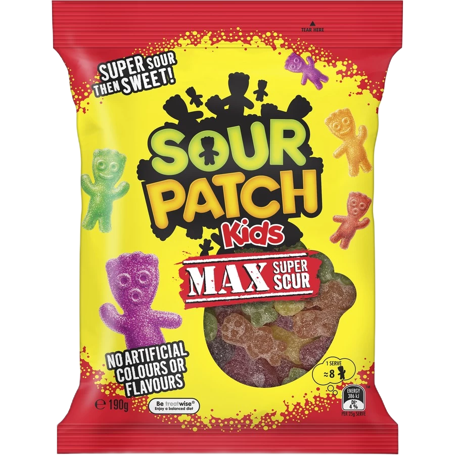 SOUR PATCH KIDS MAX – Delicious super sour fruit flavoured lollies covered in a sour then sweet blast!