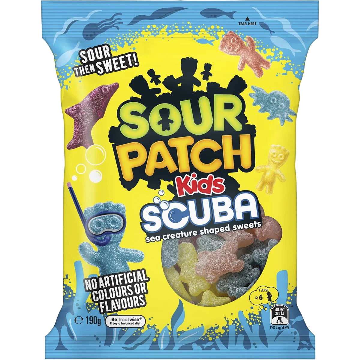 SOUR PATCH KIDS SCUBA – Delicious fruit flavoured lollies in fun, sea-themed shapes, covered in a sour then sweet blast!