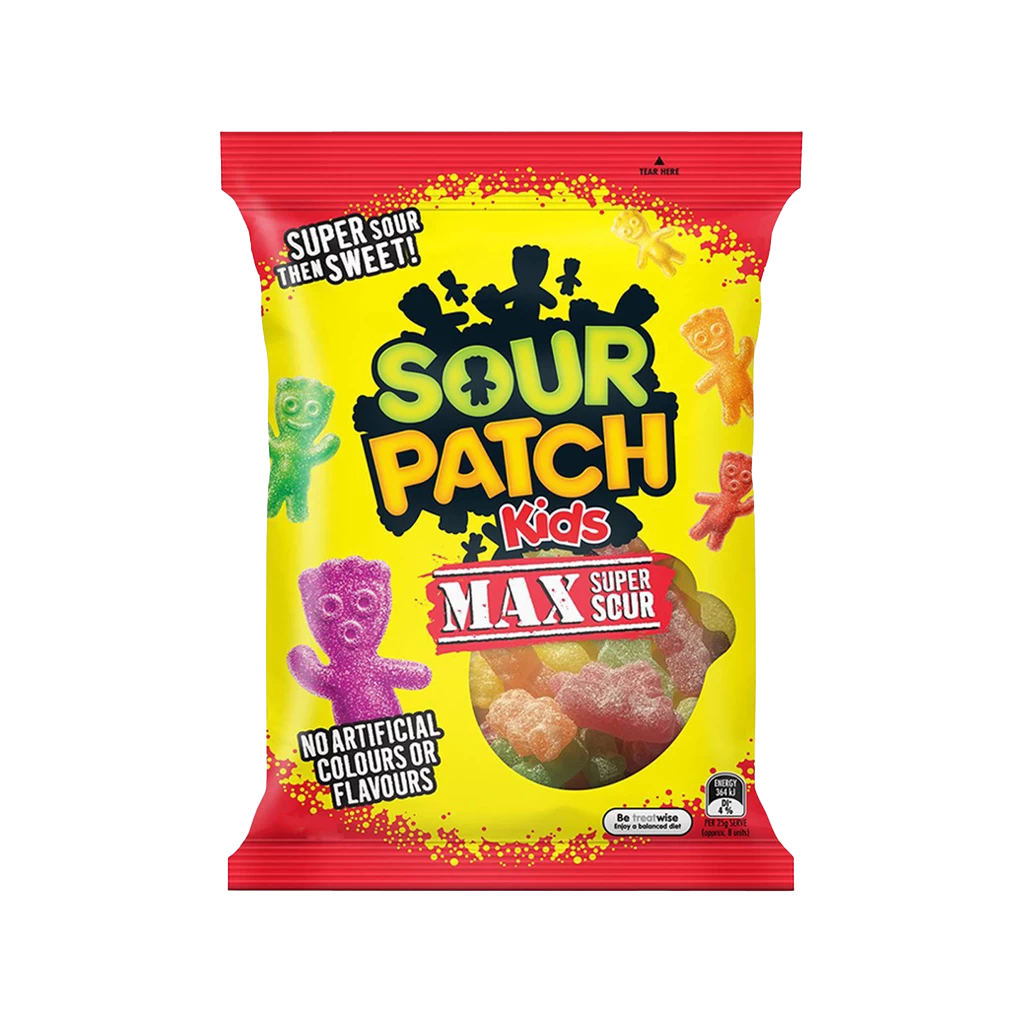 These hard-to-find Sour Patch Kids are SUPER Sour, then Sweet. Produced by the Natural Confectionery Company in Australia, these MAX Super Sour Patch Kids have no artificial flavors or colors, which we would argue gives them a better texture.