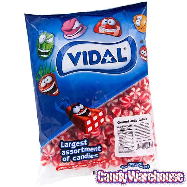 Bag contains 2 kilograms (about 4.4 pounds) of Strawberry Creme Twist Gumdrops Candy.