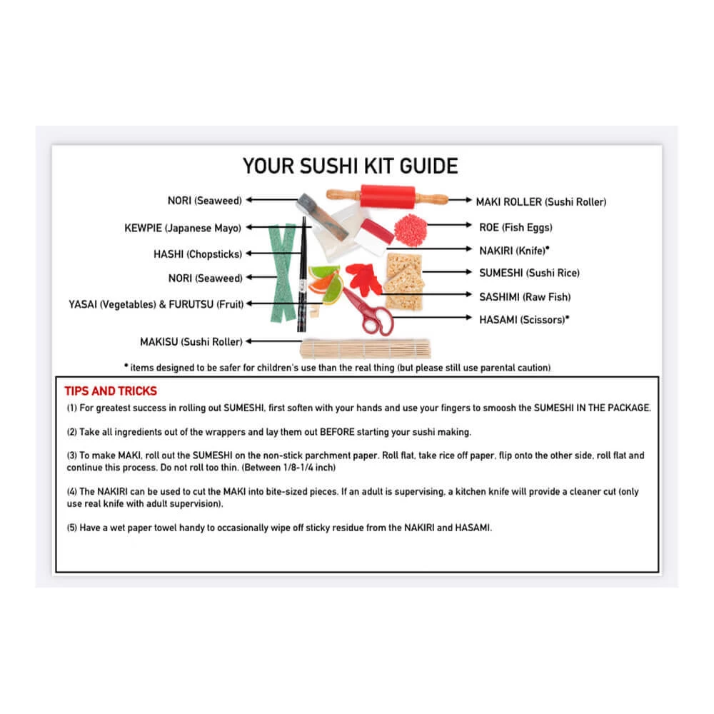 4. The NAKIRI can be used to cut the MAKI into bite-sized pieces. If an adult is supervising, a kitchen knife will provide a cleaner cut (only use real knife with adult supervision).