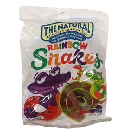The Natural Confectionery Co. Rainbow Snakes, yummy fruity snake combo’s! Aussie Made and packed full of deliciousness, with no artificial colours, no artificial flavours, no GMOs and no artificial sweeteners.